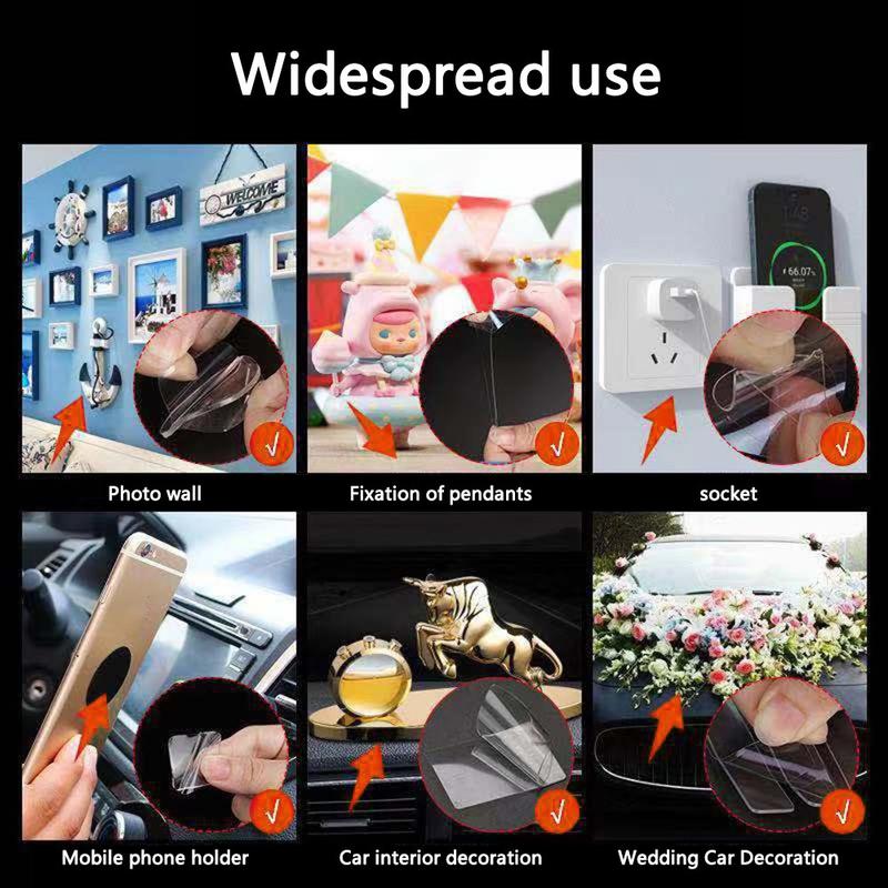 Hecho de material acrílico, flexible y duradero, y no deja marcas de pegamento después de retirarlo