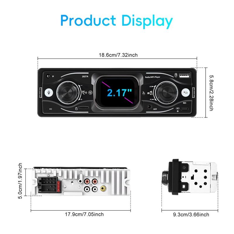 2027A Autorradio DIN simple con pantalla táctil de 2.17" - Compatible con Bluetooth 5.0, FM/AM/RDS, USB-C, ecualizador, control en el volante