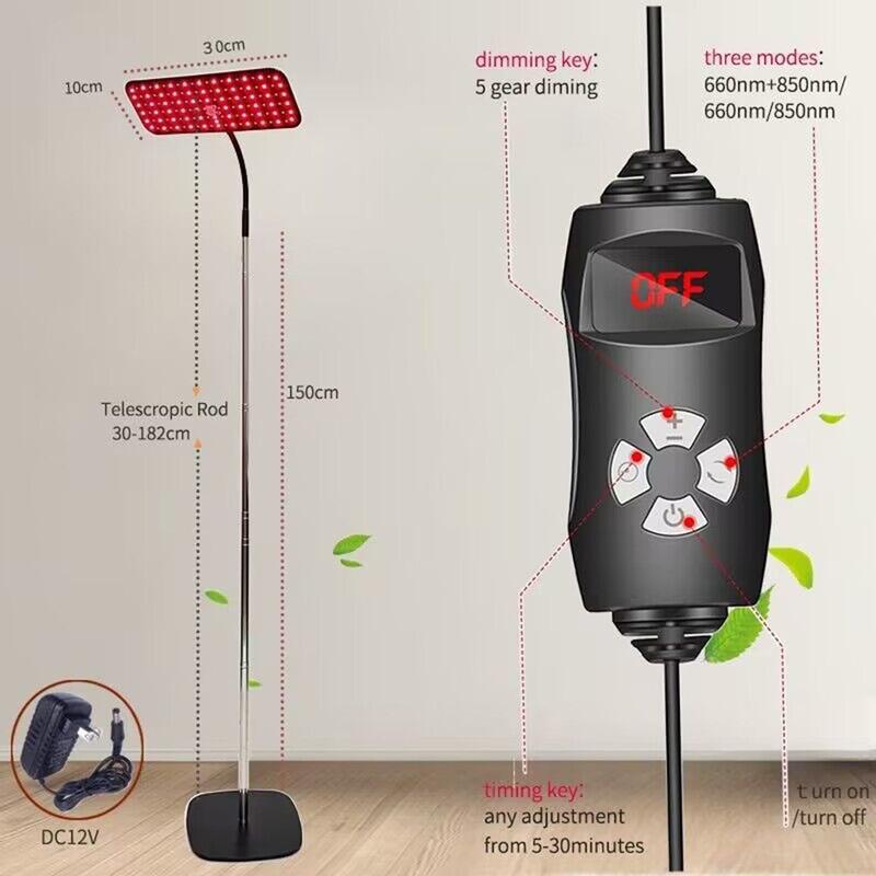 - Temporizador ajustable y soporte de altura - Incluye un temporizador ajustable (5-30 minutos) y un soporte extensible (30-130 cm) para personalizar su sesión de terapia y posicionamiento.