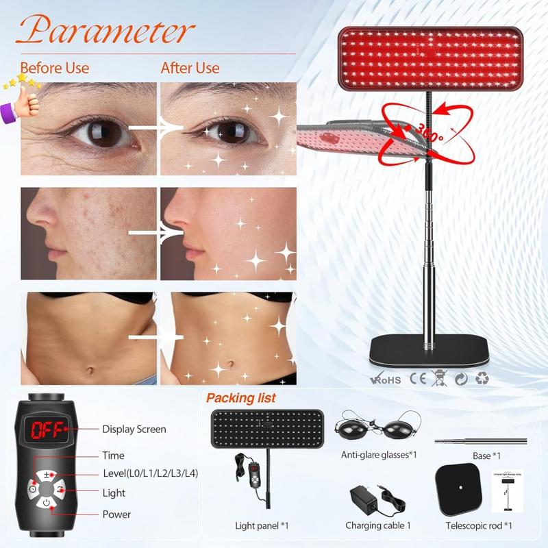- Beneficios para la salud de la piel y antienvejecimiento - La luz roja estimula la producción de colágeno, mejorando la textura de la piel, la elasticidad y reduciendo las arrugas o manchas para un brillo juvenil.