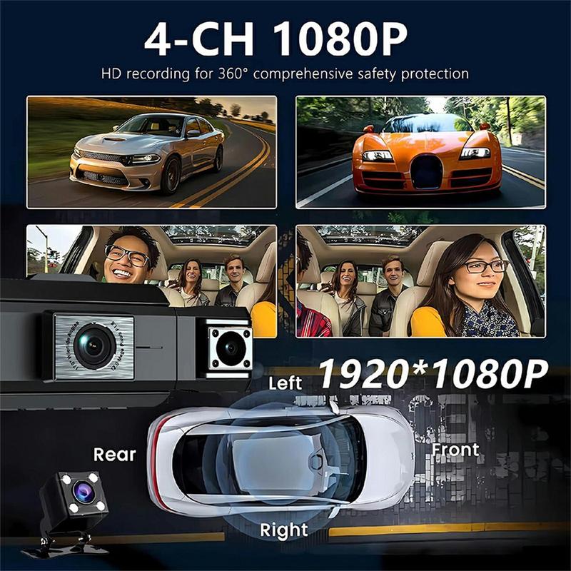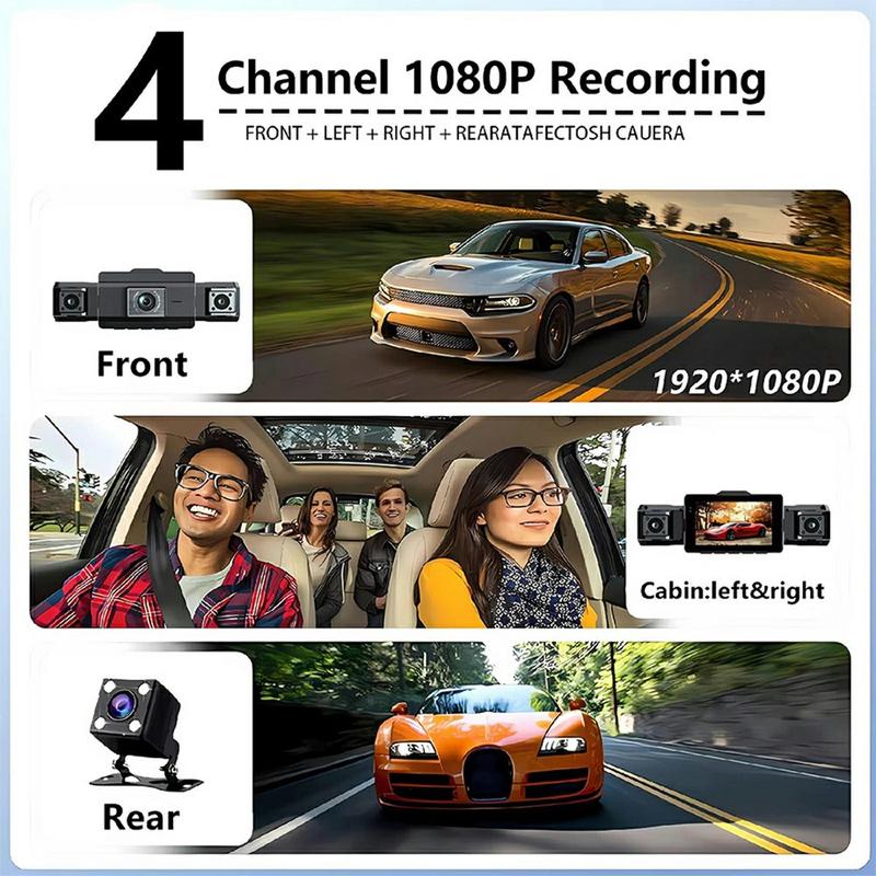 La dash cam WiFi 9728D es un completo sistema de cámara para vehículos de 4 canales diseñado para capturar todos los ángulos de su conducción. Con cámaras delantera, izquierda, derecha y trasera opcional, proporciona una amplia cobertura alrededor de su vehículo, ayudándole a documentar viajes, incidentes y alrededores con claridad y confianza.
