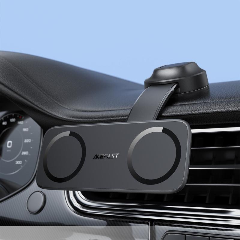 El ACEFAST D60 destaca por su diseño de doble imán, que te ofrece la rara ventaja de montar dos smartphones a la vez. Sus fuertes imanes, el acolchado de silicona que protege contra arañazos y los ángulos de visión flexibles lo hacen mucho más versátil que los soportes estándar para un solo teléfono. Fabricado con materiales duraderos y diseñado para una instalación segura en el salpicadero, mantiene sus dispositivos estables, visibles y accesibles para una conducción más segura y eficiente.