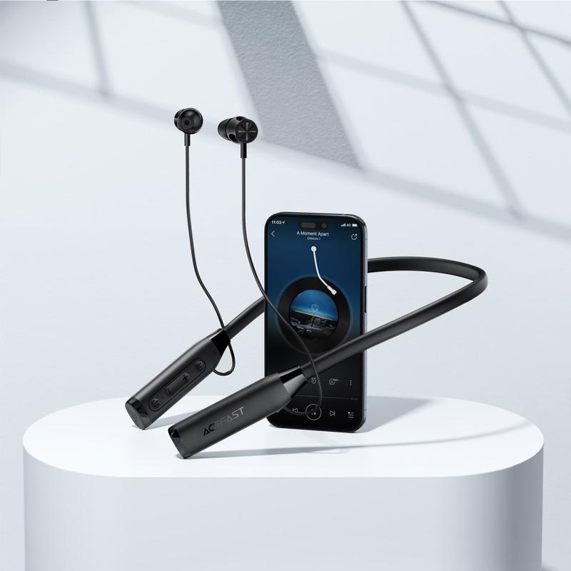 Acefast N7 Auriculares Bluetooth con banda para el cuello, pantalla LED y refuerzo de graves - Negro