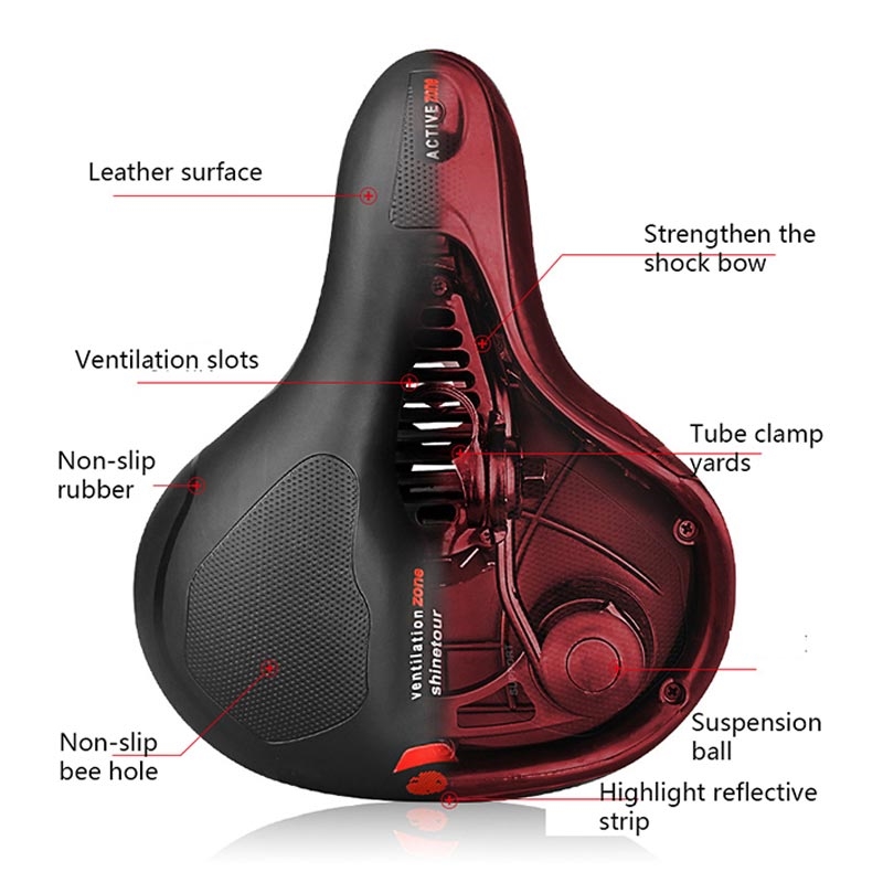 Sillín de Bicicleta Acolchado Suave y Ancho - Sillín de Bicicleta Reflectante a Prueba de Golpes con Bola de Suspensión