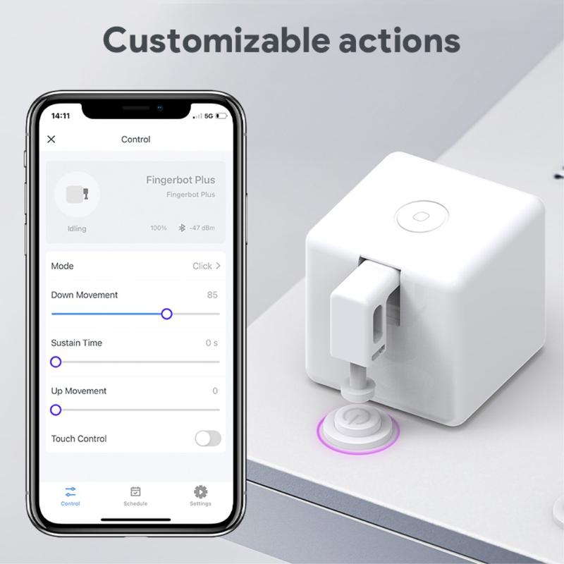El Fingerbot Plus puede automatizar prácticamente cualquier dispositivo con un botón físico, desde cafeteras y aires acondicionados hasta interruptores de pared y aparatos electrónicos de sobremesa. Su motor de precisión y su distancia de pulsación personalizable lo hacen adaptable a innumerables casos de uso, tendiendo un puente entre los electrodomésticos tradicionales y la moderna tecnología inteligente para el hogar.