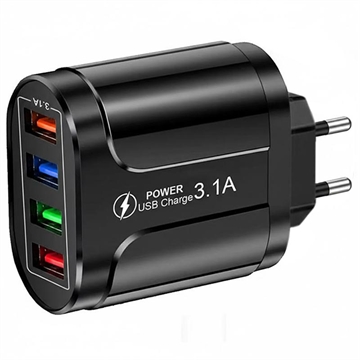 Adaptador de Corriente USB Universal de Carga Rápida de 4 Puertos - 48W - Negro