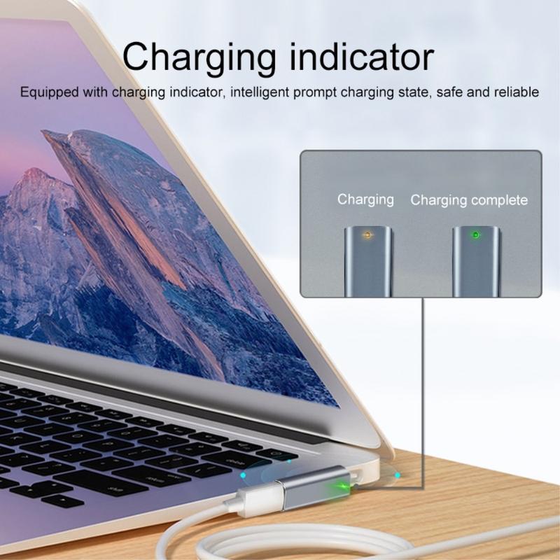 La interfaz magnética garantiza una conexión segura que resiste la desconexión accidental, lo que ayuda a proteger el portátil durante la carga. Un indicador de carga integrado muestra claramente el estado de carga, proporcionando tranquilidad y una fácil supervisión de un vistazo.