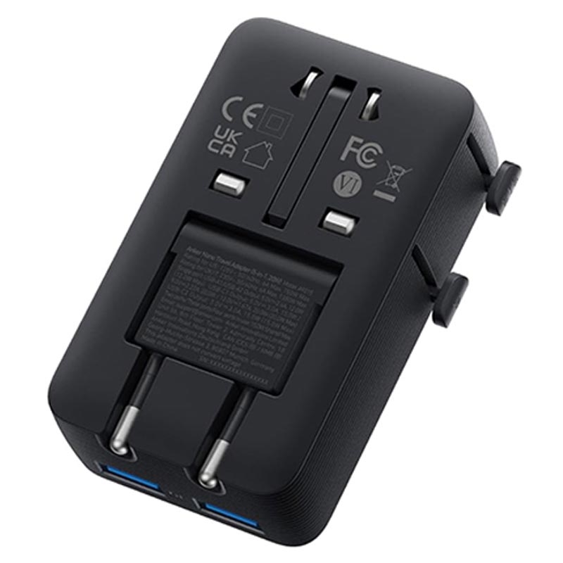 El adaptador de viaje Anker Nano es la solución de alimentación compacta ideal para los viajeros de todo el mundo. Diseñado para funcionar en más de 200 países, cuenta con cuatro tipos de enchufe universales -tipo A, tipo I, tipo G y tipo C- que garantizan una compatibilidad perfecta allá donde vayas. Con cinco puertos en total, incluidas dos salidas USB-C y dos USB-A, además de una toma de CA universal, permite cargar varios dispositivos a la vez, incluso durante los viajes más ajetreados.