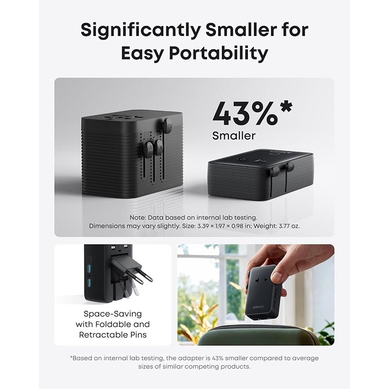 El adaptador de viaje Anker Nano combina portabilidad, compatibilidad universal y carga multidispositivo en un diseño inteligente. Su tamaño compacto ahorra espacio en tu equipaje, mientras que la alimentación USB-C de carga rápida garantiza que tus dispositivos esenciales estén siempre listos. Con funciones de seguridad avanzadas y compatibilidad con enchufes globales, es un accesorio esencial tanto para viajeros ocasionales como frecuentes.