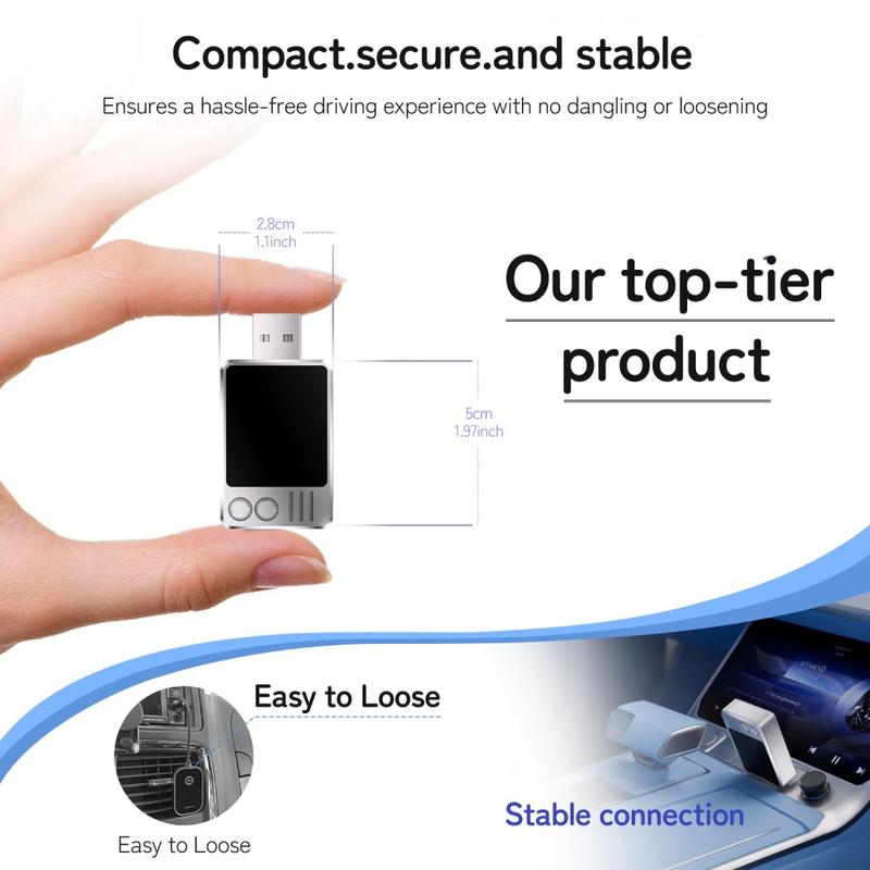Este adaptador ofrece una actualización sencilla y eficaz para los conductores que desean la comodidad de CarPlay inalámbrico sin cambiar el sistema de su vehículo. Con una conectividad estable, reconexión automática y compatibilidad con todas las funciones, mejora la comodidad y la usabilidad en cada viaje.