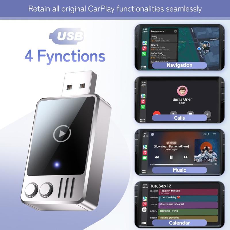 El adaptador es totalmente compatible con todas las funciones originales de CarPlay, incluidas la navegación, las llamadas telefónicas, la transmisión de música, la mensajería y el acceso al calendario. Su experiencia de conducción sigue siendo familiar, solo que sin el cable.