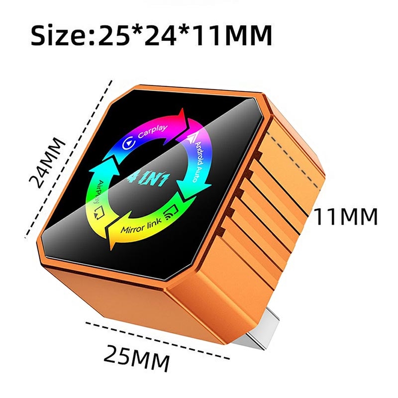 Adaptador Q1BVS 4 en 1 para Android Auto/CarPlay con AirPlay y Mirror Link - Naranja