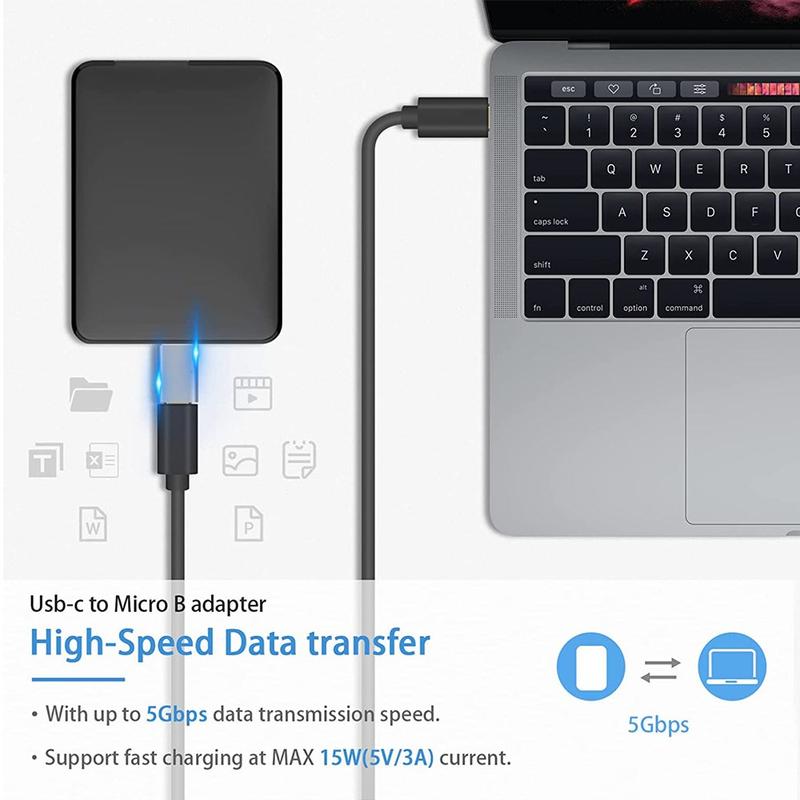 Conecta tu disco duro externo o SSD con un puerto Micro USB 3.0 Micro-B a dispositivos USB-C modernos utilizando este adaptador compacto de USB-C hembra a Micro-B macho. Está diseñado para conectar dispositivos de almacenamiento portátiles antiguos a ordenadores portátiles, ordenadores de sobremesa y tabletas más nuevos con USB-C o Thunderbolt 3, para que puedas transferir archivos rápidamente sin necesidad de llevar adaptadores adicionales. Con una velocidad de datos de hasta 5 Gbps y un ajuste sólido y perfecto en ambos extremos, ofrece un rendimiento estable para realizar copias de seguridad, transferir archivos multimedia y editar directamente desde su unidad.