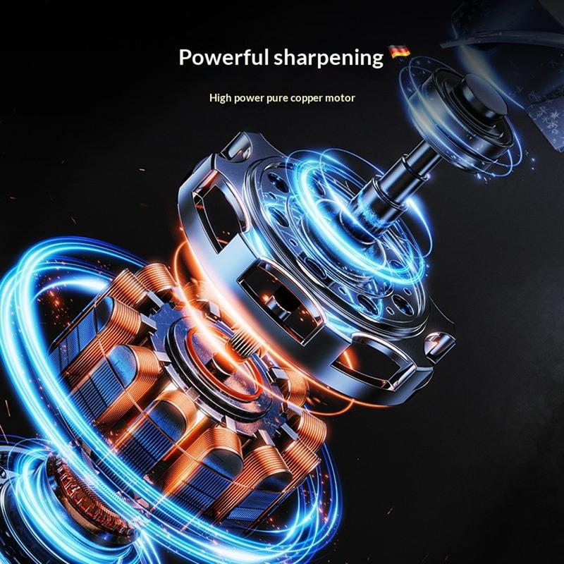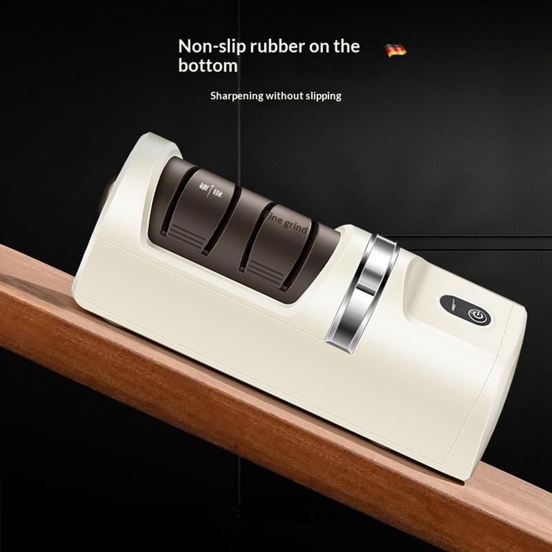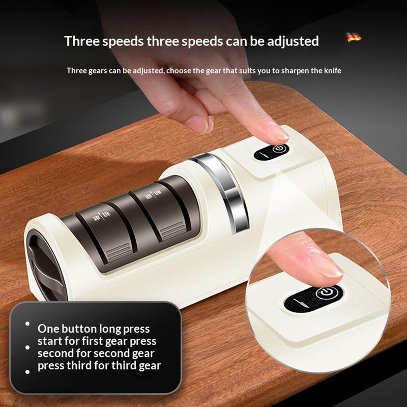 • Afilador eléctrico inalámbrico de 12W con 3 velocidades y muela de diamante para cuchillos de chef