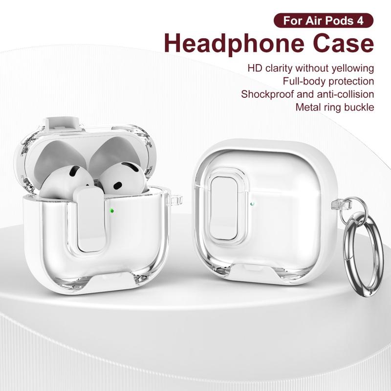 AirPods 4 Estuche híbrido protector con cierre y gancho - Blanco / Transparente