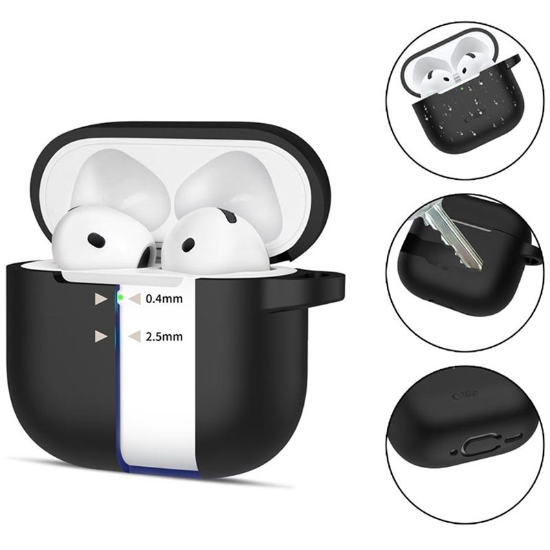 AirPods 4 Tech-Protect Estuche con gancho de silicona - Negro