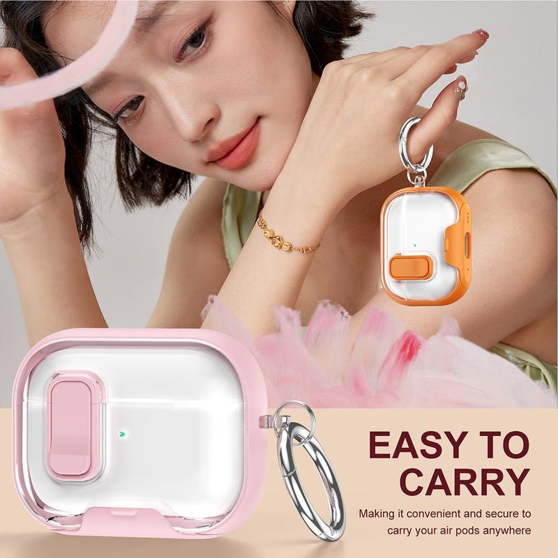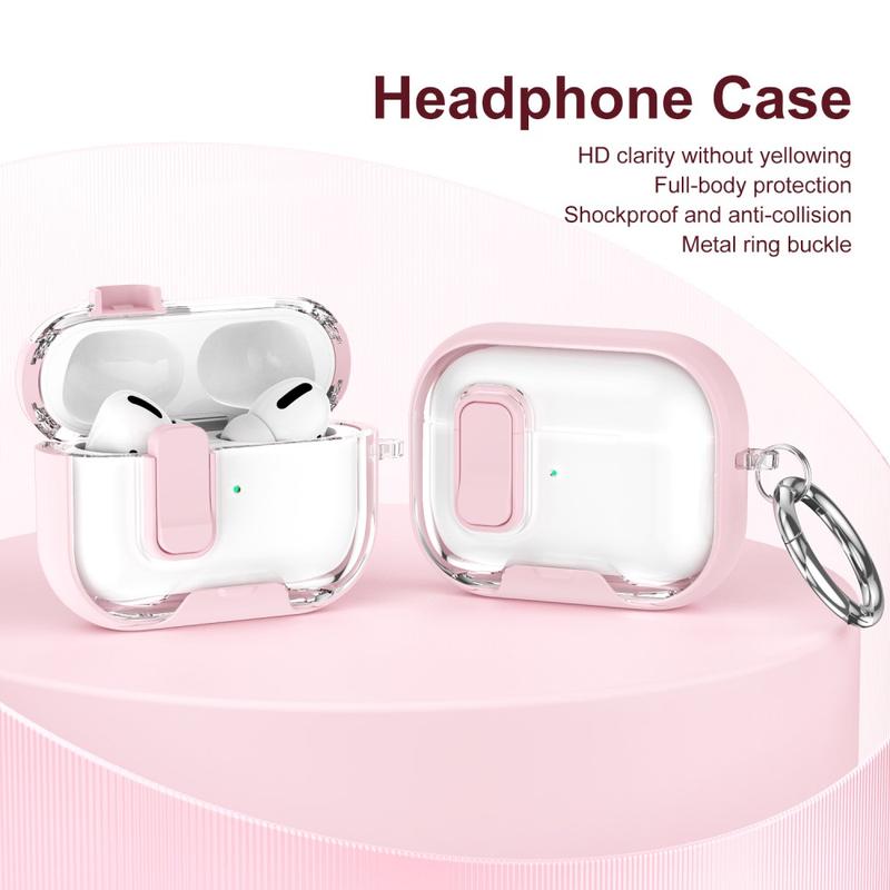 AirPods Pro 2 Estuche híbrido protector con cierre y gancho - Rosa / Transparente