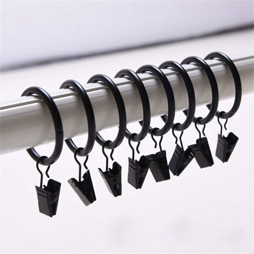 • 10 anillas para cortinas de ducha de alta resistencia con clips - ganchos de hierro resistentes al óxido, 25 mm