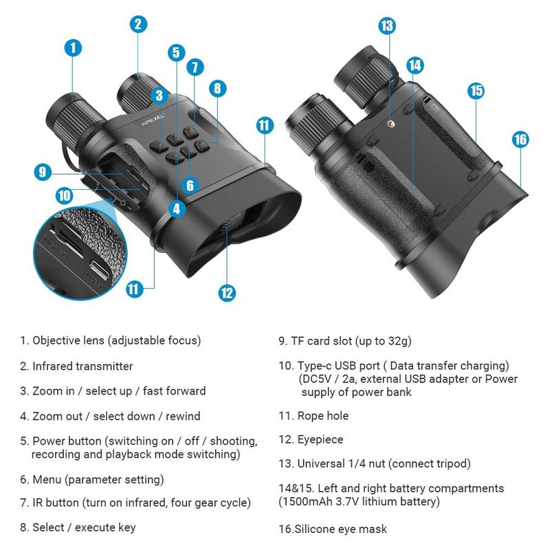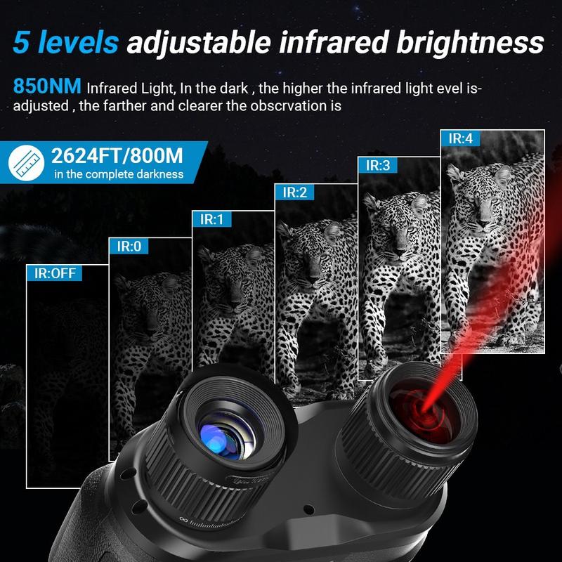 Apexel APL-NV008 Prismáticos de visión nocturna IR - Zoom 12X (4X Óptico + 3X Digital), 5 niveles IR, Grabación 1080P, Alcance 800 m