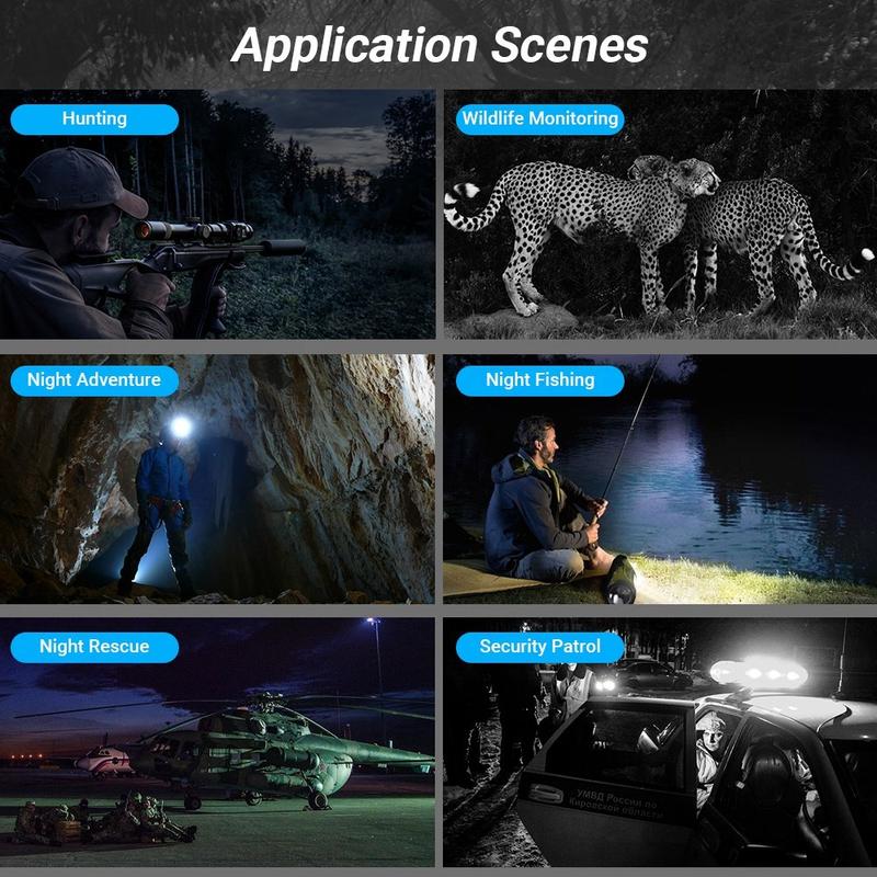 Los prismáticos de visión nocturna APEXEL APL-NV008 son una potente herramienta de observación diurna y nocturna diseñada para aplicaciones de caza, vigilancia de la vida salvaje, aventuras nocturnas y seguridad. Con un zoom óptico de 4X, un zoom digital de 3X y un sistema de lentes con revestimiento multicapa, este dispositivo ofrece imágenes claras y nítidas incluso en la oscuridad total. El iluminador infrarrojo ajustable de 850 nm ofrece 5 niveles de brillo, lo que permite observar objetivos a una distancia de hasta 800 m por la noche. Su diseño ergonómico garantiza un manejo cómodo, mientras que la cámara integrada graba fotos y vídeos directamente en una tarjeta TF para facilitar su reproducción y almacenamiento. Tanto si explora la naturaleza como si trabaja en entornos con poca luz, el APL-NV008 está fabricado para ofrecer un rendimiento fiable y eficiente.