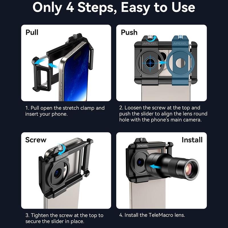 El APEXEL APL-TM6 ofrece una excelente flexibilidad en un kit compacto, sustituyendo la necesidad de varios objetivos por separado. Su combinación de alcance de teleobjetivo y precisión macro lo hace adecuado para una amplia gama de escenarios de disparo, mientras que el clip universal garantiza un uso sencillo con la mayoría de los smartphones. Ligero, portátil y ópticamente avanzado, es una actualización inteligente para los fotógrafos móviles que desean un mayor control creativo.