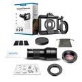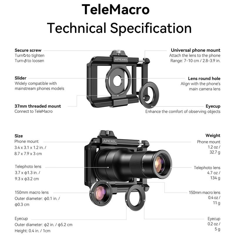 - Diseño 2 en 1: teleobjetivo 6x + objetivo macro de 150 mm.