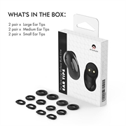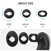 - Tres tamaños (S / M / L) se adaptan a canales auditivos de 10 mm a 14 mm, garantizando sesiones de escucha más largas sin puntos de presión.