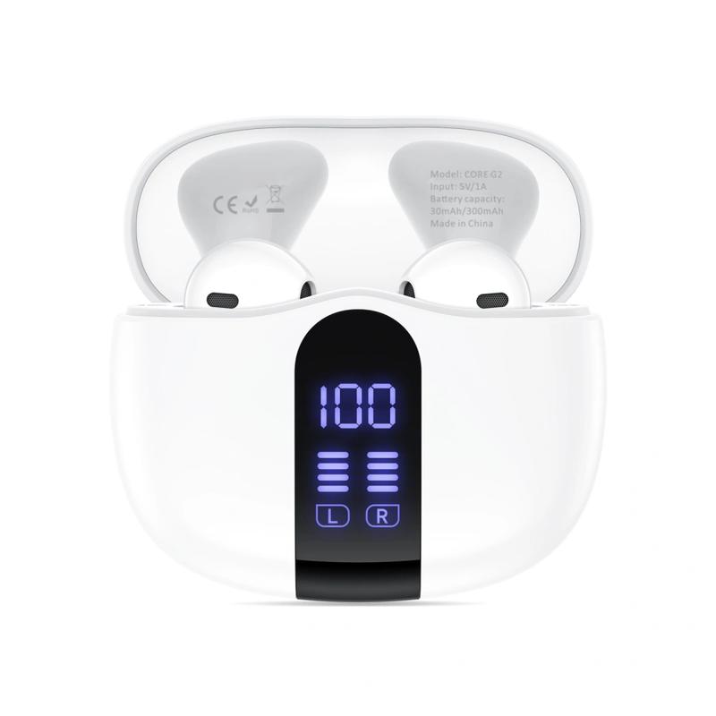 Auriculares inalámbricos Tech-Protect UltraBoost TWS Core G2 con pantalla LED - Blanco