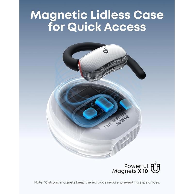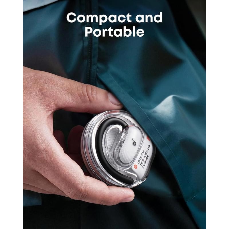 Los auriculares abiertos Soundcore V40i están diseñados para estilos de vida activos en los que la comodidad, la atención y la calidad de sonido son importantes. Con un innovador diseño de oreja abierta y ganchos ajustables, se asientan cómodamente fuera del canal auditivo, lo que le permite disfrutar de la música sin perder de vista su entorno. El elegante estuche de carga transparente sin tapa añade un toque moderno y permite un acceso rápido y sin esfuerzo dondequiera que esté.