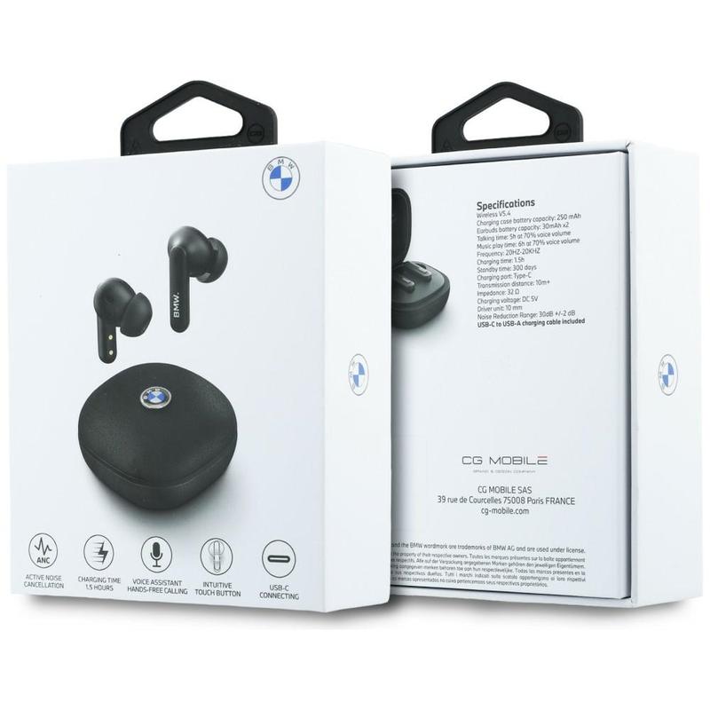 • Auriculares inalámbricos BMW Leather Metal Logo ENC con control táctil: Bluetooth 5.4, asistente de voz, estuche de carga USB-C