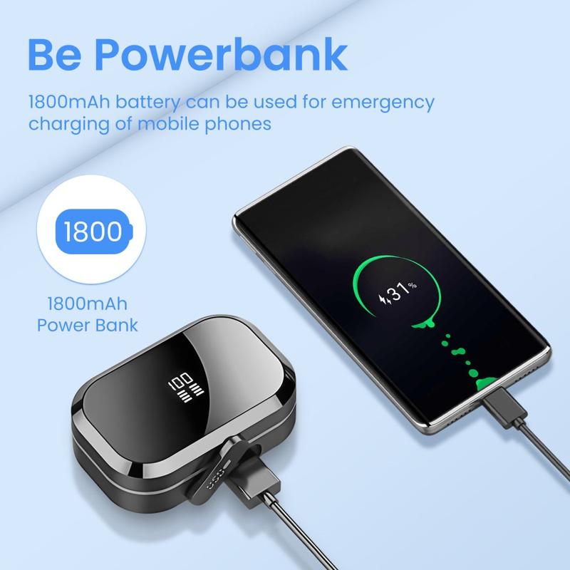 Auriculares inalámbricos Q25 con estuche de carga y función de batería externa: auriculares Bluetooth 5.2 con pantalla LED y 3 modos de sonido