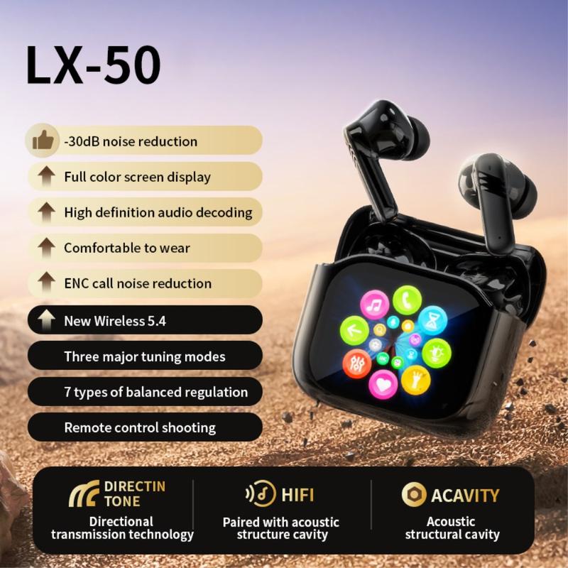Los auriculares inalámbricos LX-50 combinan control inteligente, reducción eficaz del ruido y sonido envolvente en un moderno diseño intraauricular. La característica más destacada es la pantalla táctil HD a todo color integrada en el estuche de carga, que permite controlar los ajustes, modos y funciones directamente, sin necesidad de teléfono. Con doble cancelación de ruido, conectividad Bluetooth 5.4 estable y un cómodo ajuste ergonómico, los auriculares LX-50 están diseñados para la escucha diaria, las llamadas y la comodidad sobre la marcha.