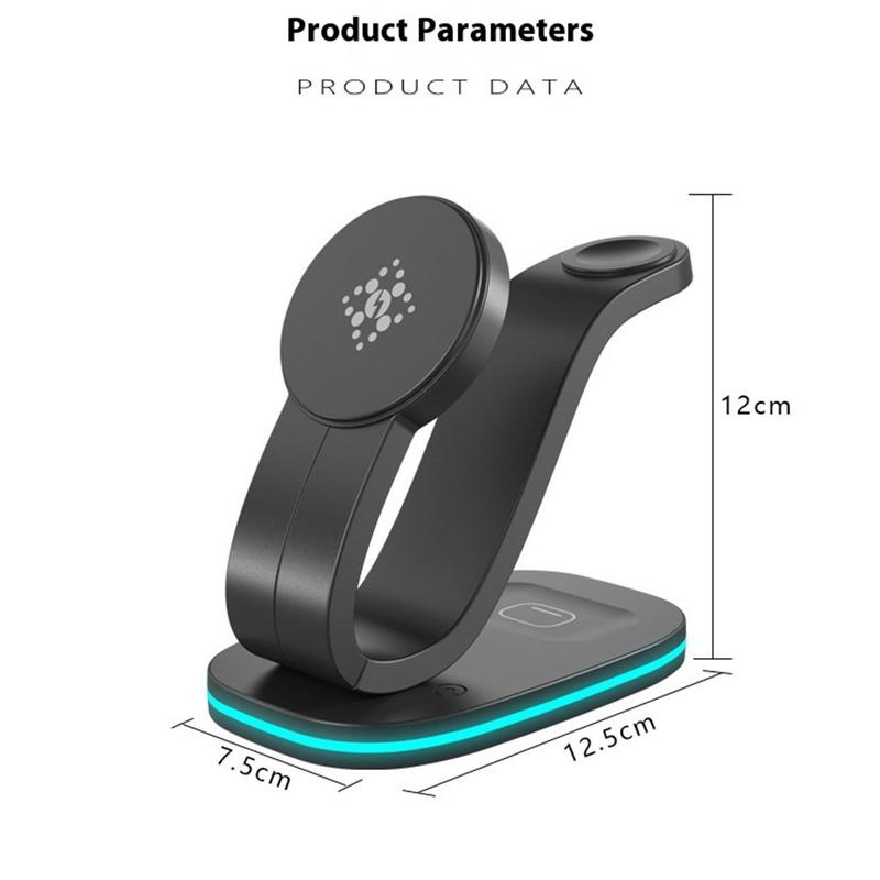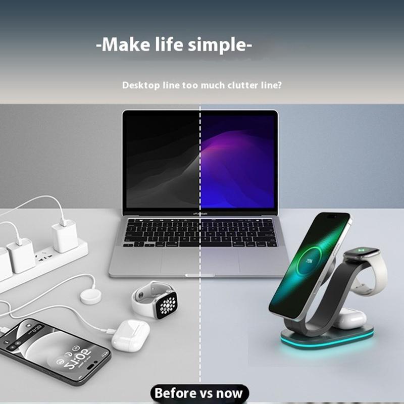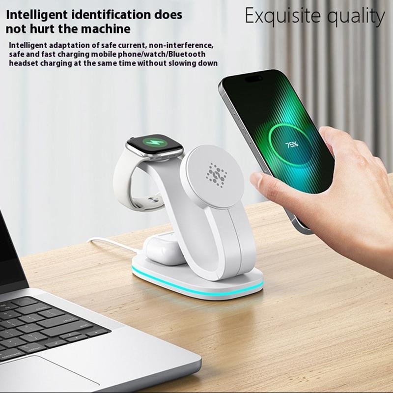 B-28 Cargador inalámbrico 3 en 1 con luz nocturna: carga el teléfono, el reloj y los auriculares a la vez