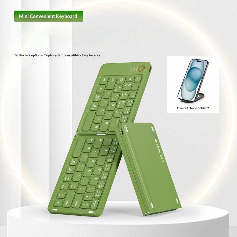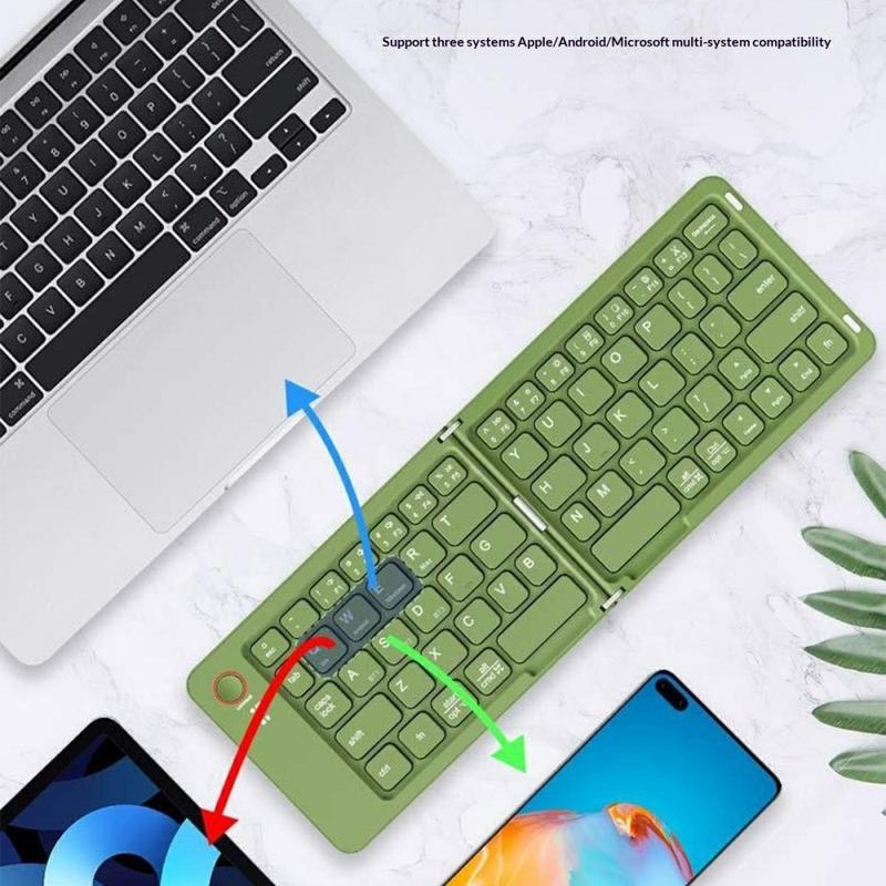 B023 Teclado inalámbrico plegable magnético de 68 teclas con soporte para teléfono - QWERTY - Verde
