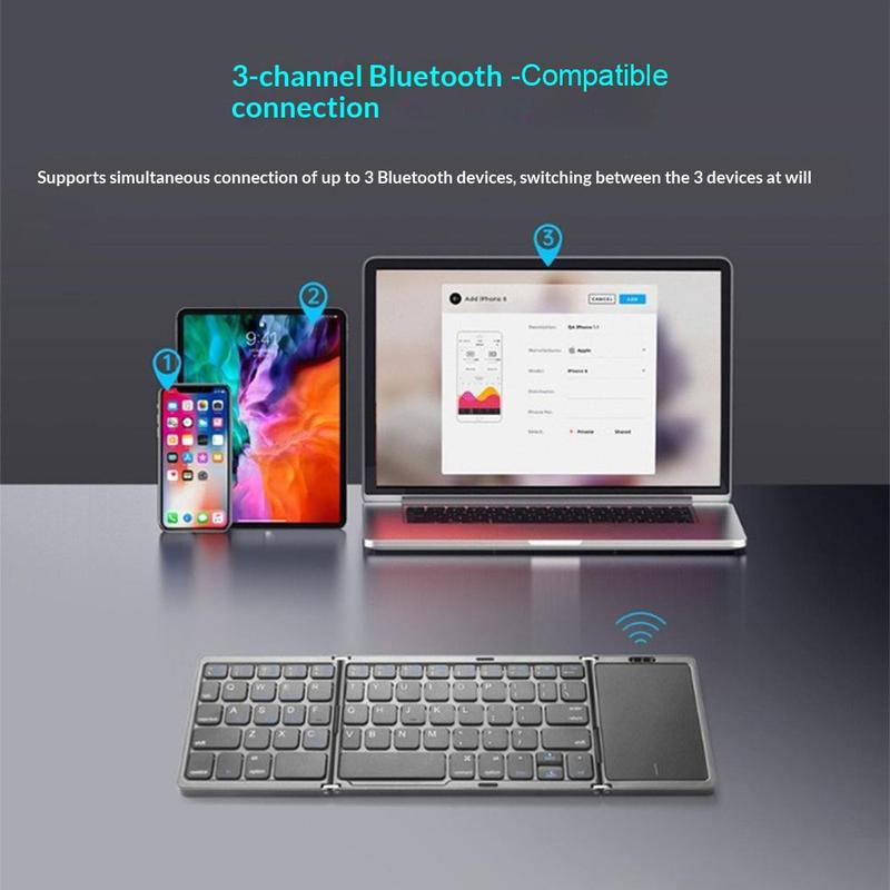 Trabaja cómodamente en cualquier lugar con el teclado inalámbrico plegable con panel táctil B089. Su diseño delgado y plegable en tres partes cabe fácilmente en una bolsa para portátil, mientras que el panel táctil integrado permite una navegación fluida sin necesidad de un ratón independiente. Diseñado para teléfonos, tabletas y portátiles, es ideal para viajar, trabajar a distancia y mejorar la productividad diaria.