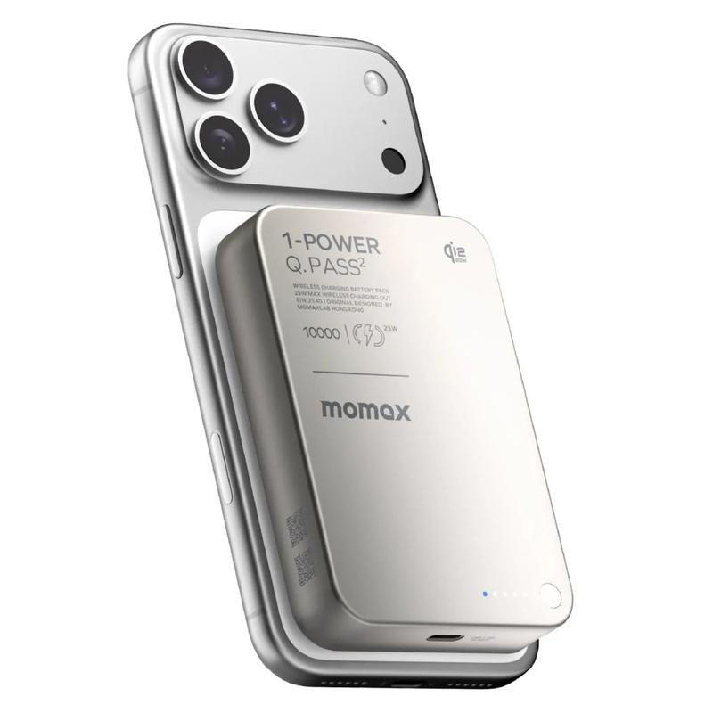 Momax 1-Power Q.Pass2 Qi2.2 25W Magnetic Wireless Power Bank 10000mAh - USB-C PD 30W, Snap-On Charging para iPhone Serie 12-17