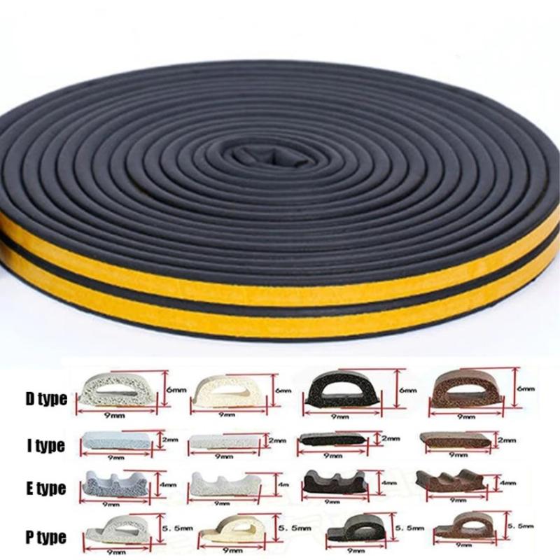 Tira de sellado autoadhesiva EPDM para puertas y ventanas - anticolisión, cortavientos y reductora de ruido - 5m, 9x2mm