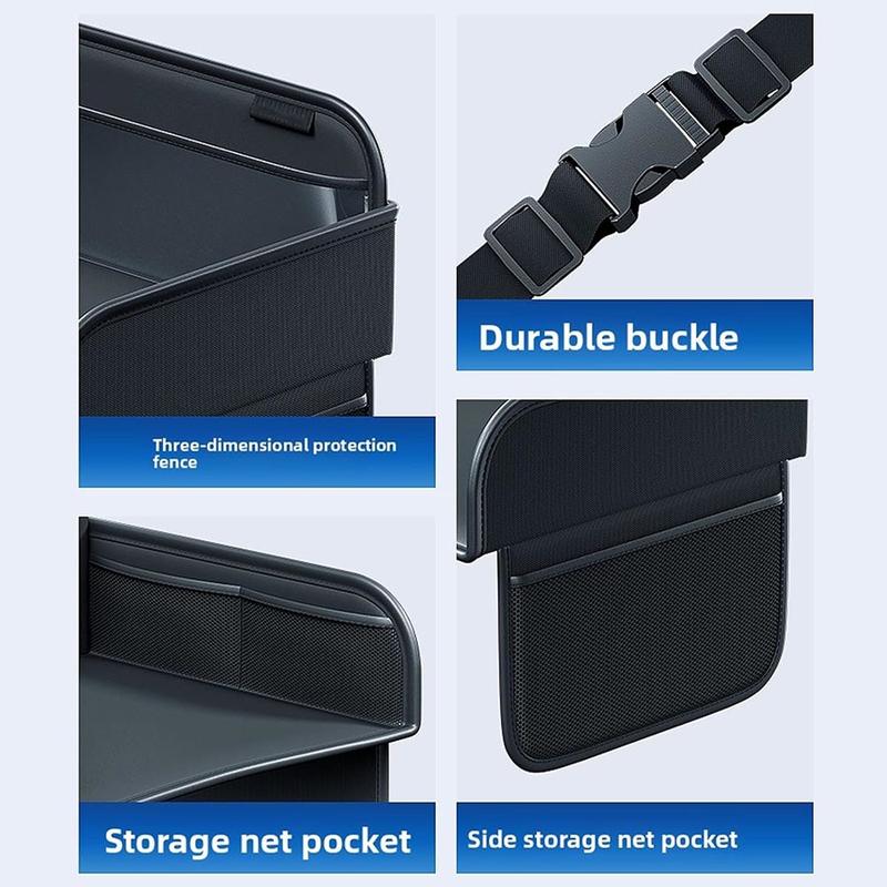 - Diseño multifuncional que combina una bandeja de viaje para niños y un organizador para el respaldo del asiento del coche
