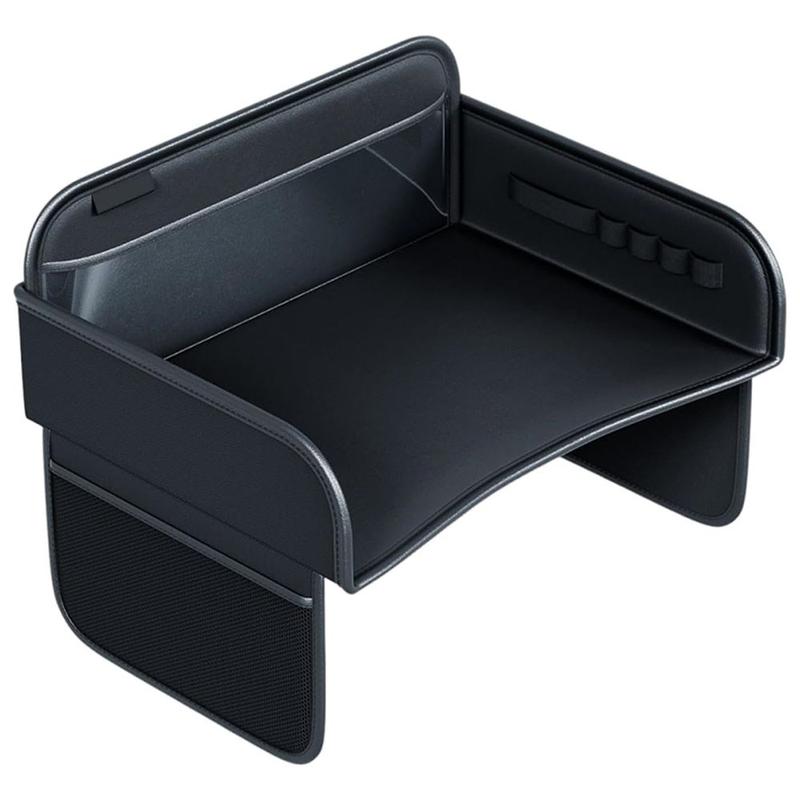 La superficie de la bandeja está diseñada para sujetar los objetos cotidianos con mayor seguridad, mientras que el borde protector elevado ayuda a evitar que los juguetes, los aperitivos y los accesorios se deslicen durante el trayecto. Las múltiples zonas de almacenamiento facilitan mantener el coche más ordenado y organizado, con un espacio específico para libros, toallitas, bolígrafos y juguetes pequeños. Gracias a su diseño con correas, se instala fácilmente y se ajusta a diferentes alturas de asientos de coche, lo que la convierte en una opción práctica para muchos vehículos familiares.