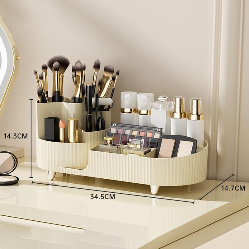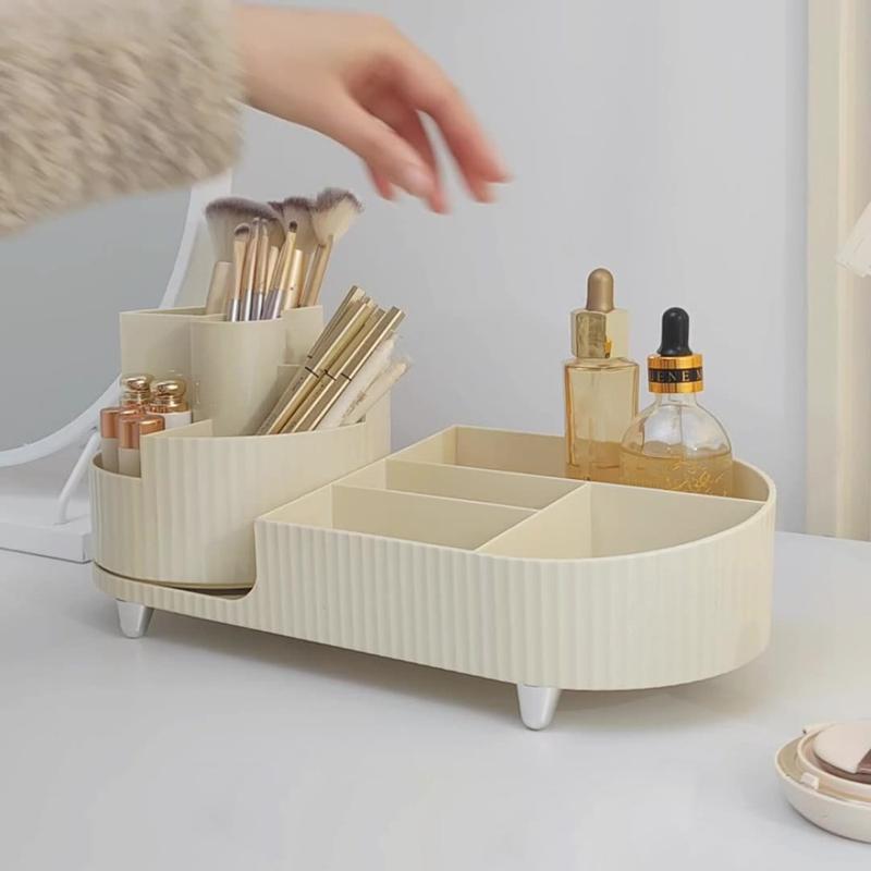 Bandeja organizadora de maquillaje con soporte giratorio para brochas - Beige