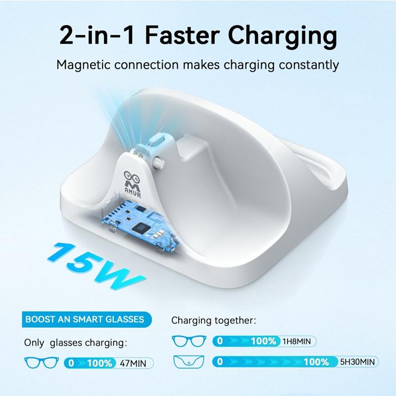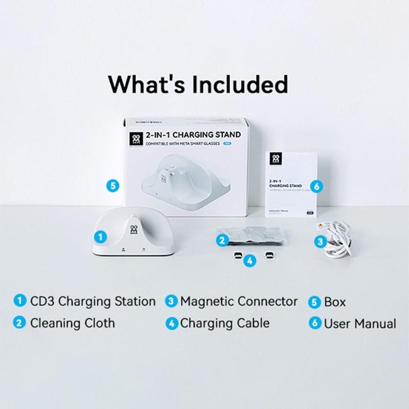 • Base de carga rápida magnética 2 en 1 AMVR CD3 para gafas Ray-Ban Meta AI Gen 1, Gen 2