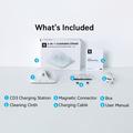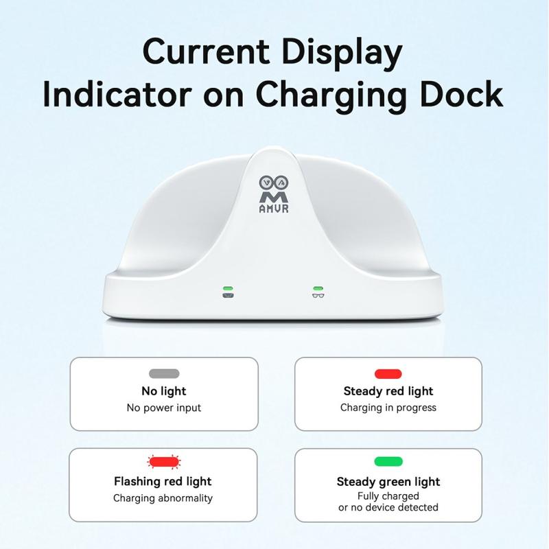 La base también detiene automáticamente la carga cuando las gafas alcanzan la máxima potencia, lo que protege la salud del dispositivo y prolonga la vida útil de la batería.