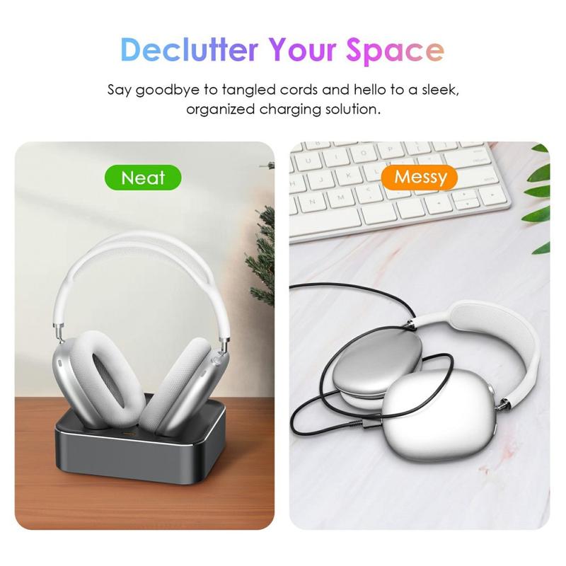 Este soporte de carga es una excelente opción para los usuarios de AirPods Max que buscan una forma más elegante y práctica de cargar y guardar sus auriculares. Mantiene tu espacio más ordenado, reduce el desorden de cables y hace que la carga diaria sea más cómoda.