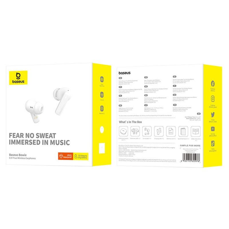 Los auriculares Baseus Bowie E19 están diseñados para usuarios que quieren un gran sonido, llamadas nítidas y comodidad durante todo el día en un solo dispositivo. Su combinación de claridad de llamada ENC, protección IPX5 y larga duración los hace perfectos para los desplazamientos, el trabajo, el fitness y el ocio.