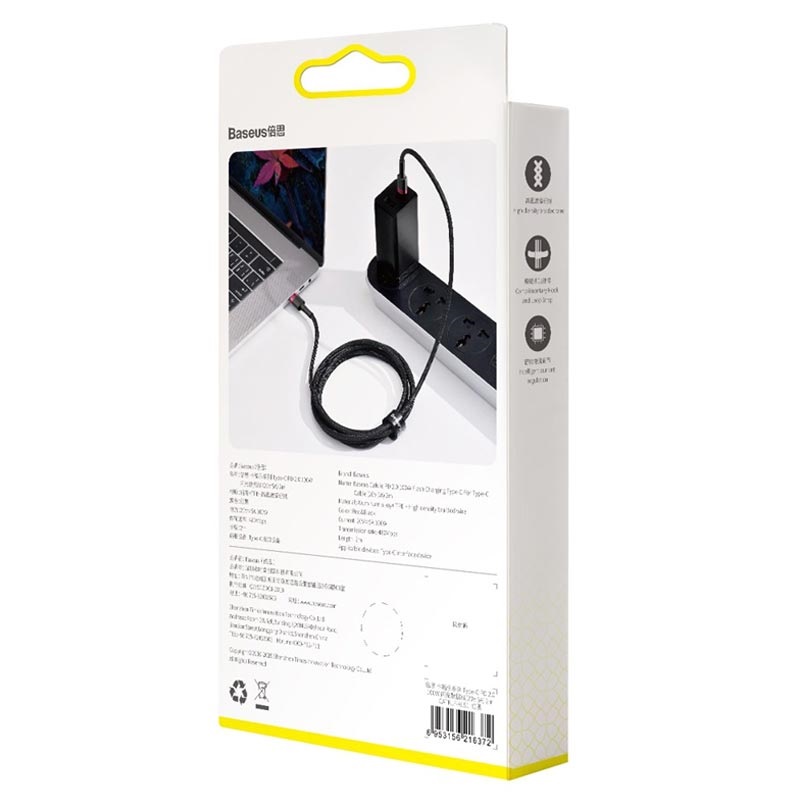 • Baseus Cafule USB-C Cable - 100W, 20V/5A, 2.0 Power Delivery, 480 Mbit/s - 2m