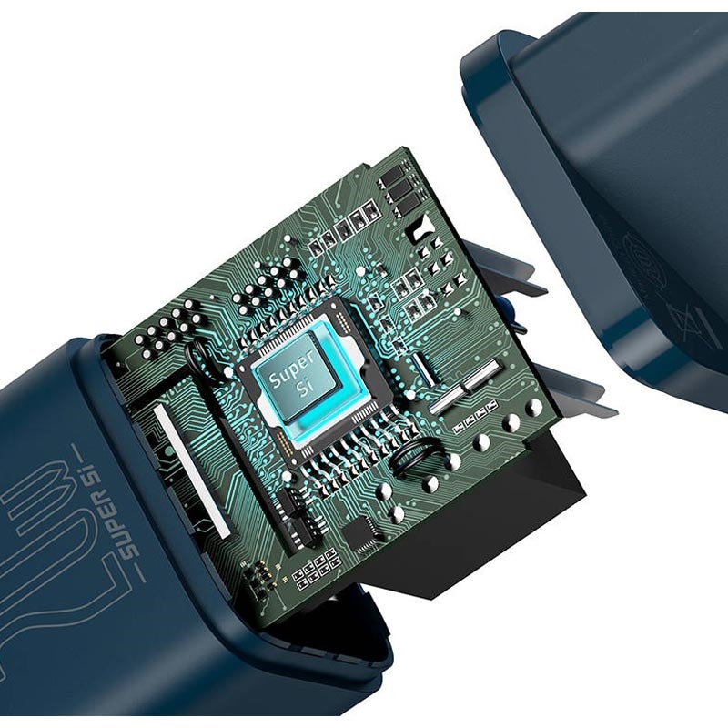 El cargador Baseus ajusta automáticamente el valor de la corriente en función del tipo de dispositivos alimentados para garantizar una velocidad de carga óptima y protegerlos de posibles daños. Entre otras cosas, el dispositivo también cuenta con una protección especial contra sobrecargas, cortocircuitos o sobrecalentamientos. La carcasa de plástico ABS contribuye a una distribución más eficiente del calor, protegiéndole de quemaduras y evitando daños en el cargador.