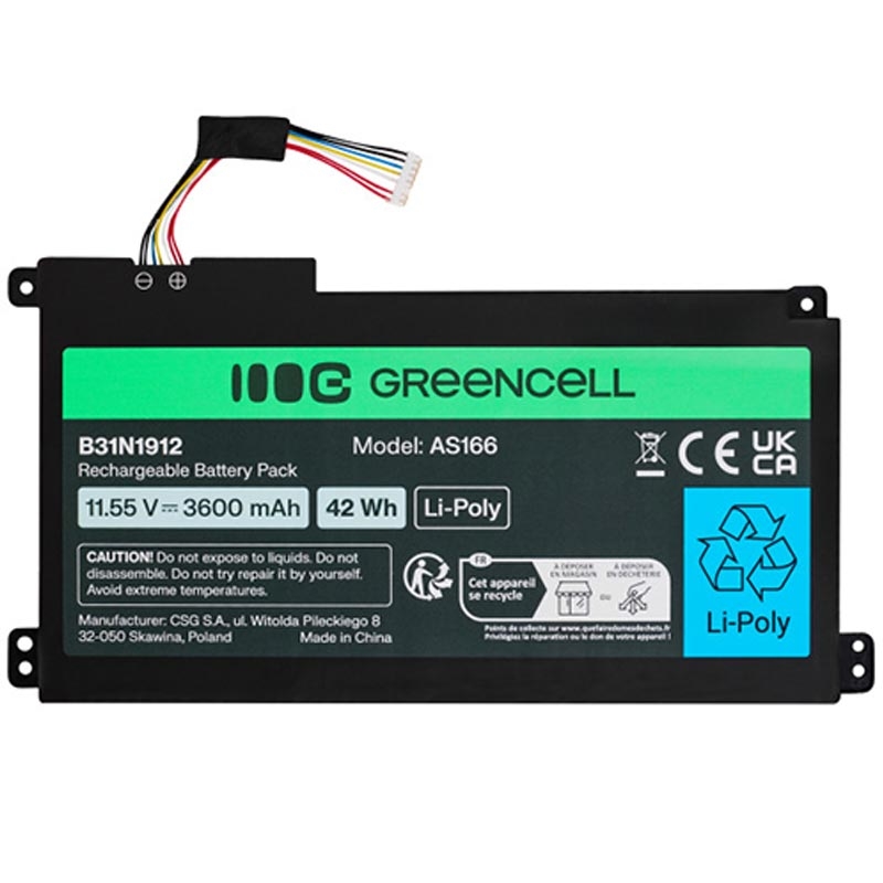 • Batería esencial Green Cell para portátil Asus VivoBook 14 - Li-Po - 11,55 V - 3600mAh