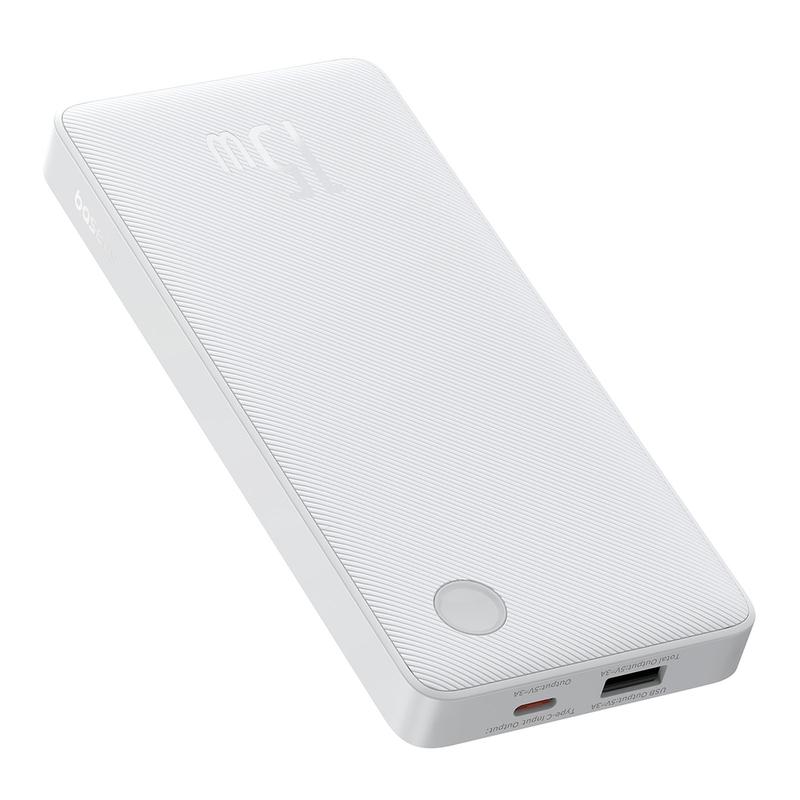 Batería externa Baseus Airpow Lite de 10 000 mAh con cable USB-C - 15W - Blanca