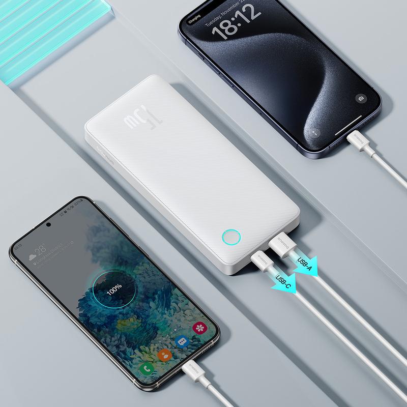 • Batería externa Baseus Airpow Lite de 10 000 mAh con puertos USB-C y USB-A y cable Baseus simple de USB-A a USB-C - 15W