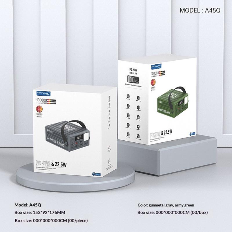 Batería externa Konfulon A45Q de 100000mAh - Carga rápida de 22.5W - Gris